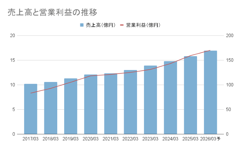 過去数年の売上高と営業利益の推移も見ておきましょう。