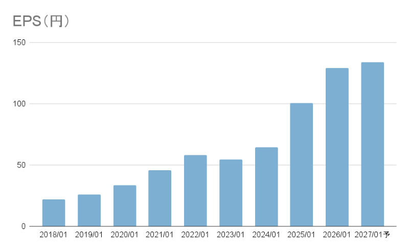 2025年以降のEPSの伸びには、利益の増加に加えて、2024年の自社株消却による株式数の減少も影響していると考えられます。