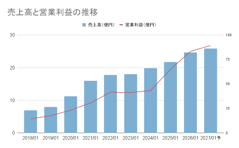 売上の伸びに加えて、利益はそれ以上のペースで増えており、収益性が高まっていることが分かります。